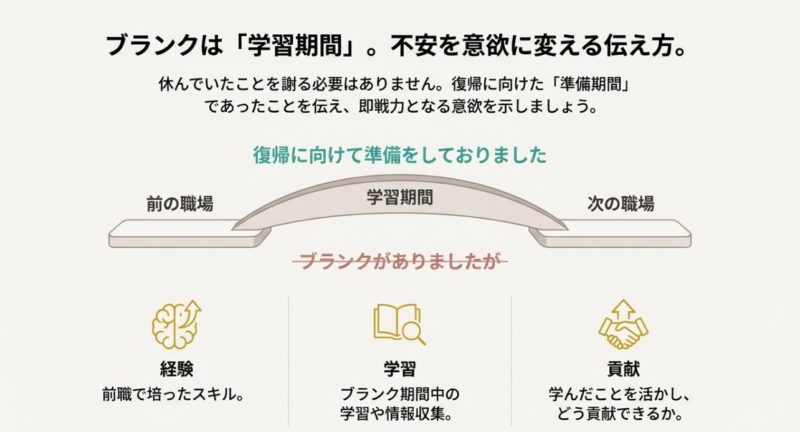 | 未経験なので教えてください | 受け身・不安定に見えやすい | 前職の強みを土台に自己研鑽し、早期キャッチアップする |