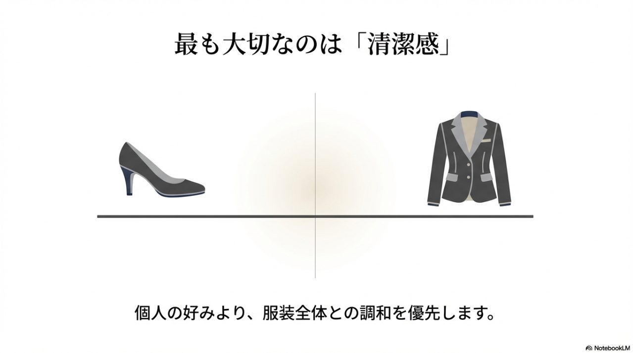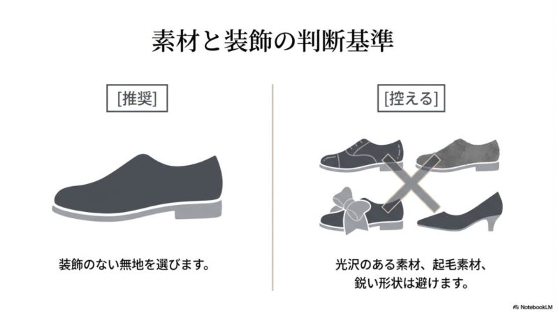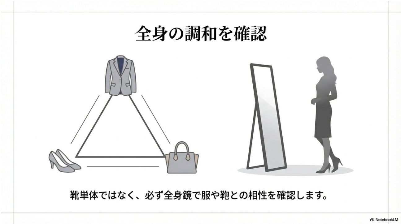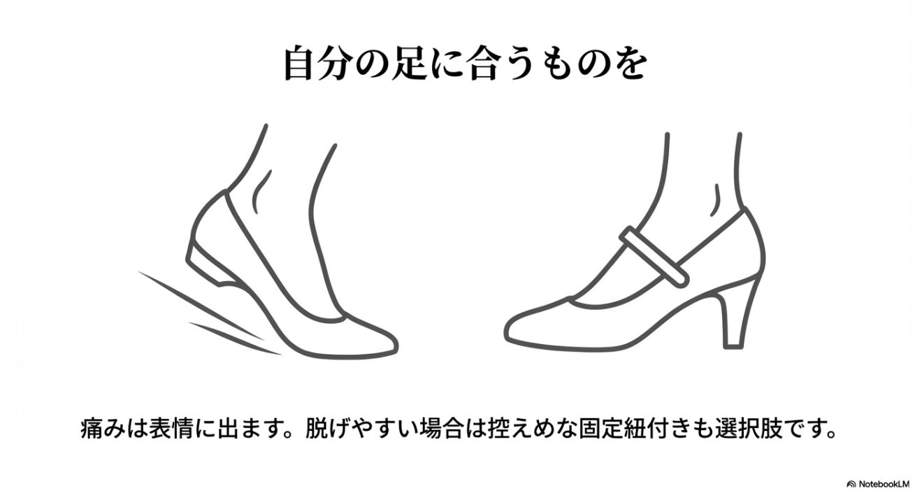 - 黒やヒールの高さなど迷いやすいポイントの判断軸