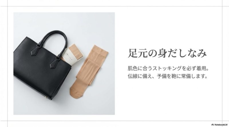 ストッキングは消耗品なので、面接前日に状態確認をしておくのがおすすめです。 予備を持つ・試着時に一緒に確認する・色をナチュラルに寄せる、この3つだけでも当日の安心感がかなり違います。