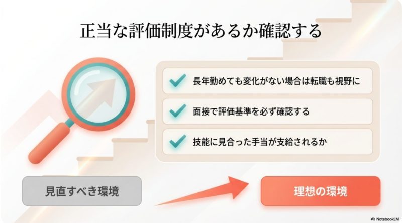 また、今の職場に昇給制度があるのか、あるなら何を達成すれば上がるのかを確認するのも重要です。 曖昧なら、努力の方向性が定まりません。 私は、昇給しにくさを感じたら感情だけで悩むより、まずは評価項目を言語化してもらうことが先かなと思います。 それでも改善しないなら、評価制度がある職場への転職を考えるのも立派な対策です。