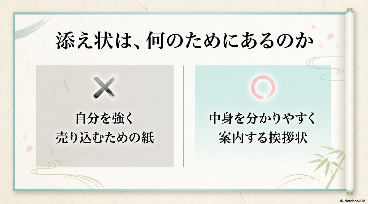 迷ったら、相手が受け取りやすいかどうかで判断してください。  この視点を持つだけで、添え状の作り方はかなりシンプルになります。