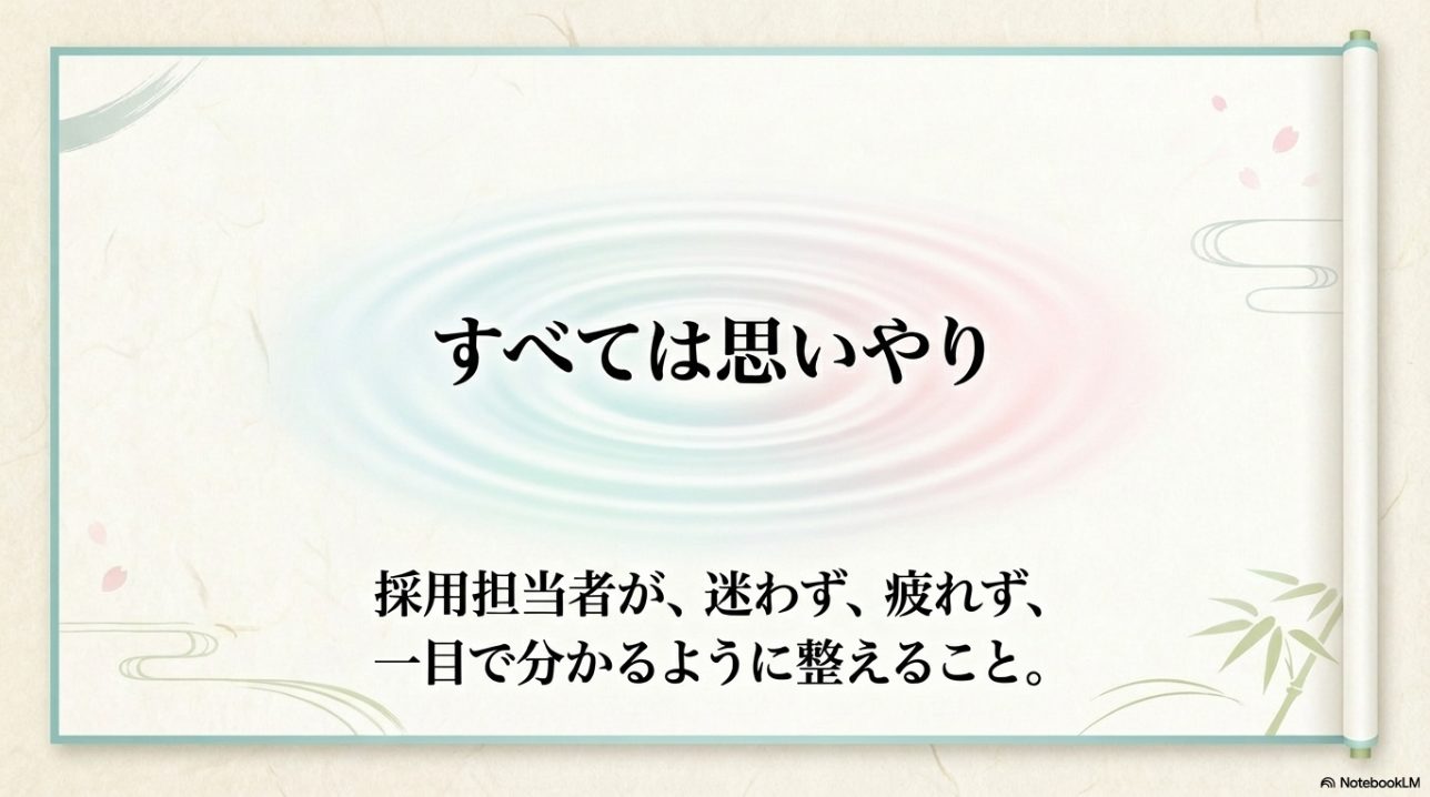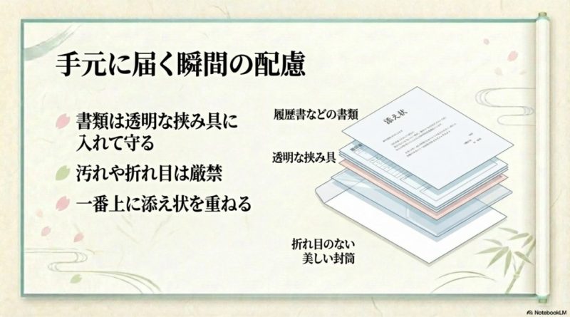 私は、添え状で迷ったら「採用担当者が迷わないか」で判断するのがおすすめです。  情報が足りない、順番がわかりにくい、封筒の見た目が雑、メール本文が要件不明。  こうした状態は、どれも読み手の負担になります。  逆に、相手が受け取りやすい状態に整っていれば、添え状としてはかなり合格点です。