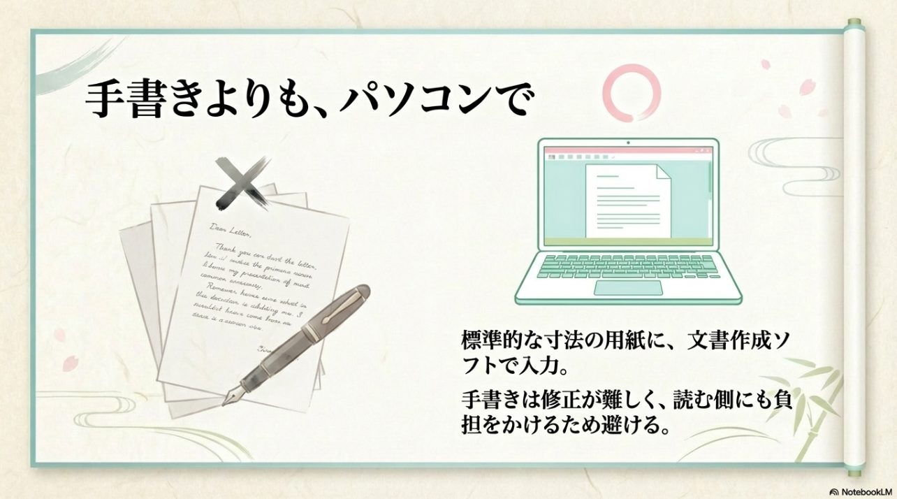 字の読みやすさに不安があるなら、無理に手書きを選ばないほうが安全です。  丁寧さを見せたい気持ちは大事ですが、読みにくさやミスのほうが先に伝わるともったいないです。